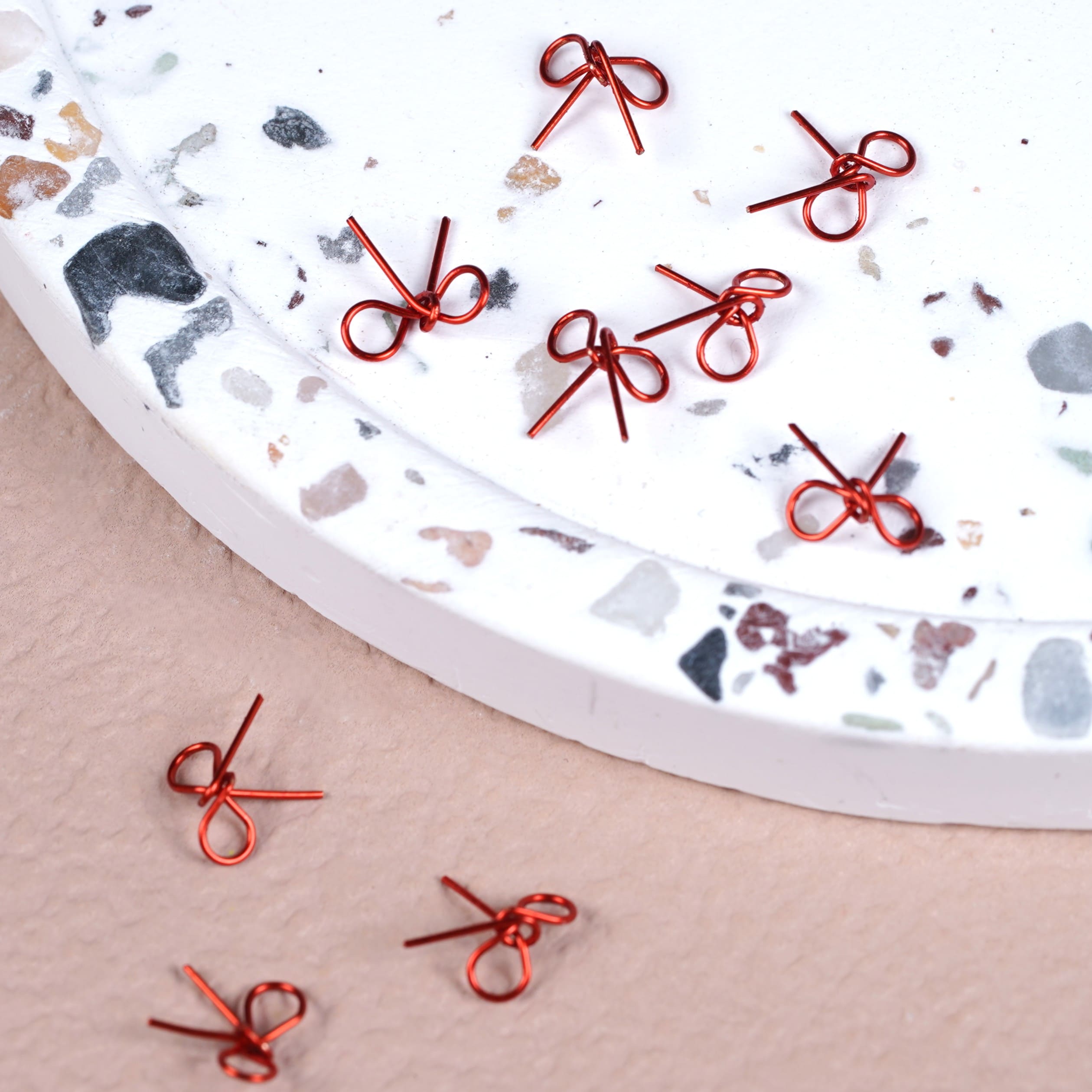 D.nail ワイヤーパーツリボン S【単品】レッド/シャンパンゴールド/ピュアシルバー